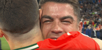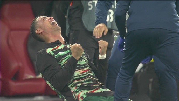 当内维斯为葡萄牙罚进制胜点球之后,40岁的葡萄牙队长C罗容许跪地哀哭,而且仰天长啸庆祝,随后喜极而泣的他,与队友和责任主谈主员纷繁拥抱庆祝。这一幕,也让一直守旧可爱他的球迷感到动容。