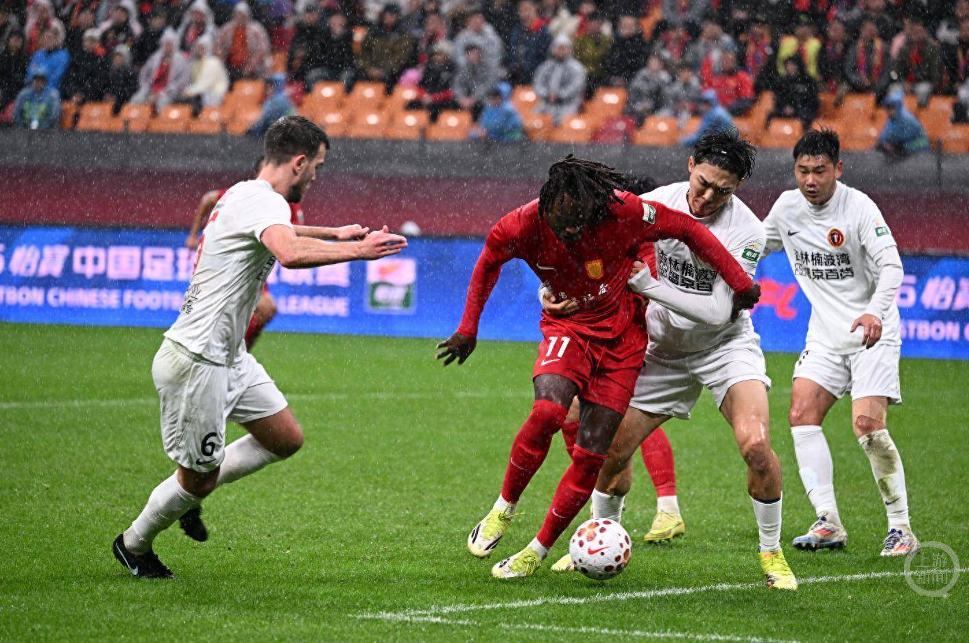 尽管赛前下起小雨,但仍有43423名球迷涌入球场。比赛历程中,重庆铜梁龙上半场占据场上上风,屡次制造胁迫但未能得分,两边半场战成0:0。